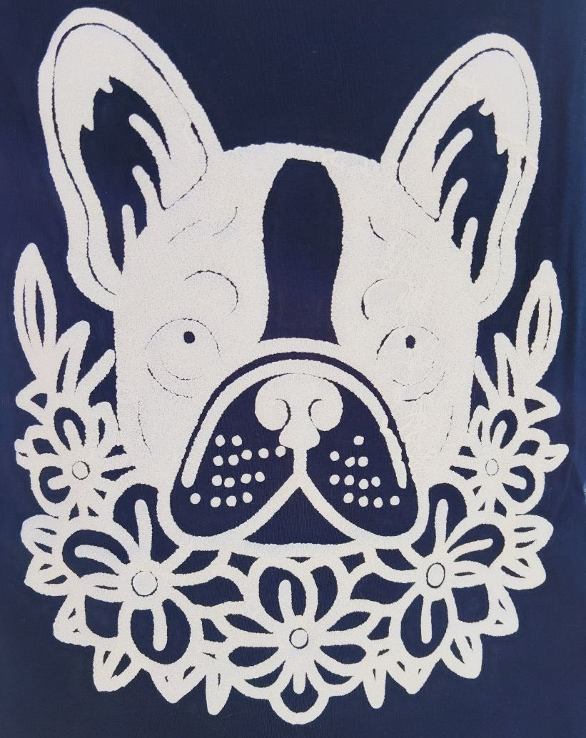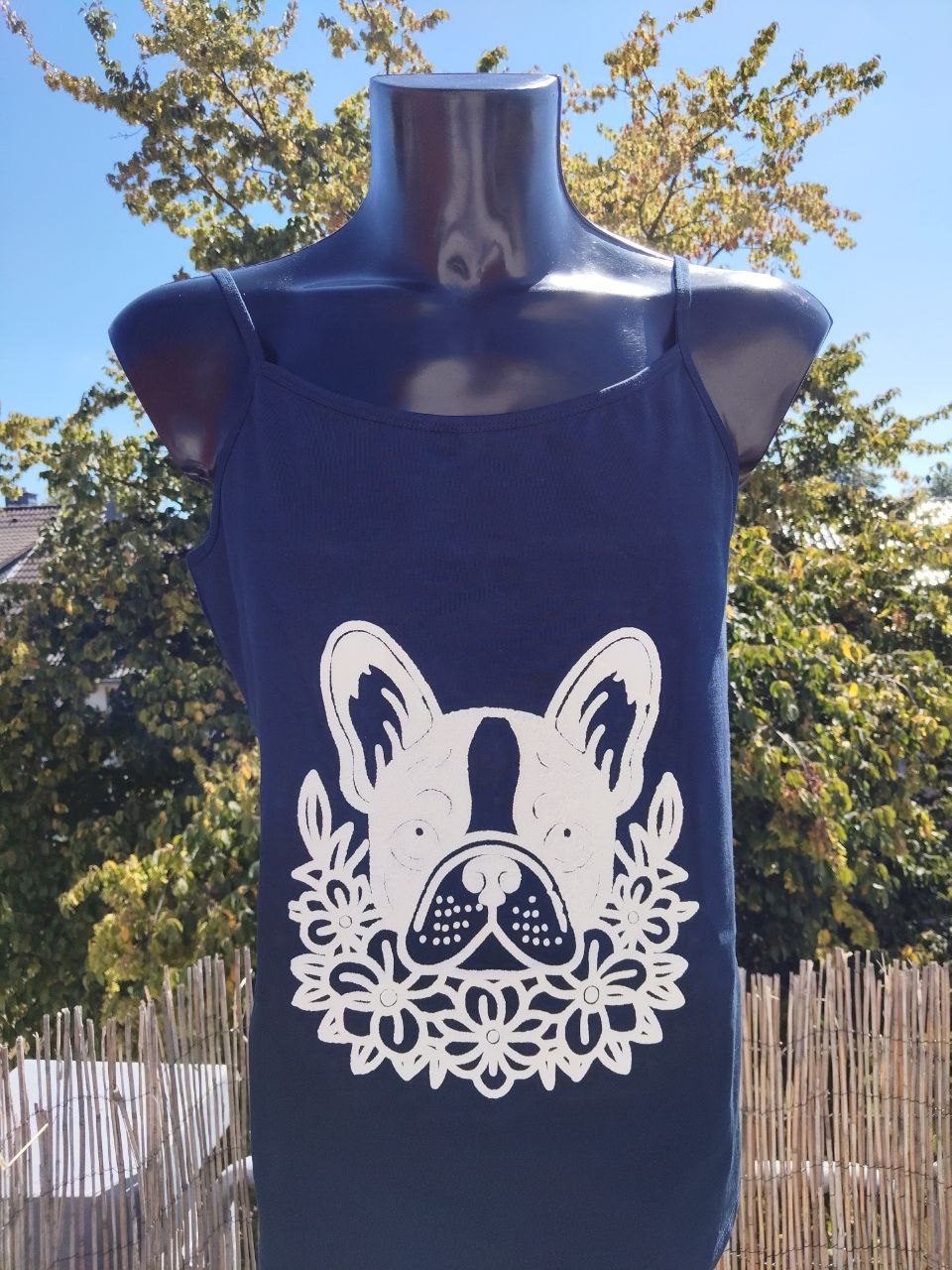 Dunkel Blaues Damen Spaghetti-Träger Shirt mit Weißen 3D BULLY Druck
