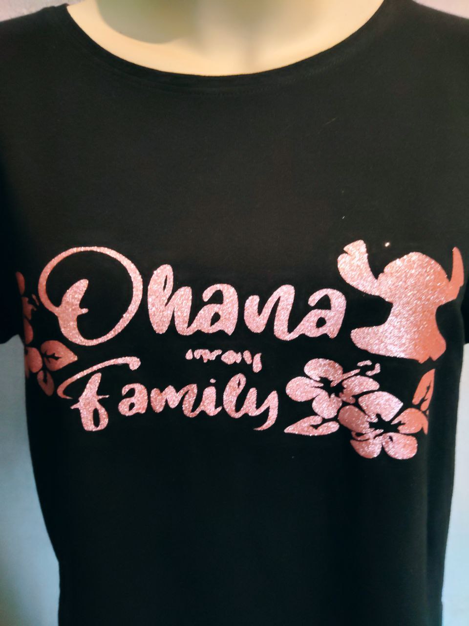 Kurzärmliges Damen Shirt ist ein modisches Basic‑Oberteil, das Komfort, Stil und einen auffälligen Look in einem kombiniert. Dieses Kurzärmliges Damen Shirt präsentiert ein trendiges Design mit einem rosa glitzernden „Ohana“ Print auf klassischem schwarzem Hintergrund, wodurch es zu einem vielseitigen Favoriten in deiner Garderobe wird. Der Rundhalsausschnitt und die kurzen Ärmel sorgen für einen legeren, feminine Silhouette, die ideal für warme Tage, Freizeit oder entspannte Alltags‑Outfits geeignet ist. Dieses Shirt lässt sich hervorragend mit Jeans, Shorts oder sogar Röcken kombinieren und verleiht jedem Look einen Hauch von Individualität.