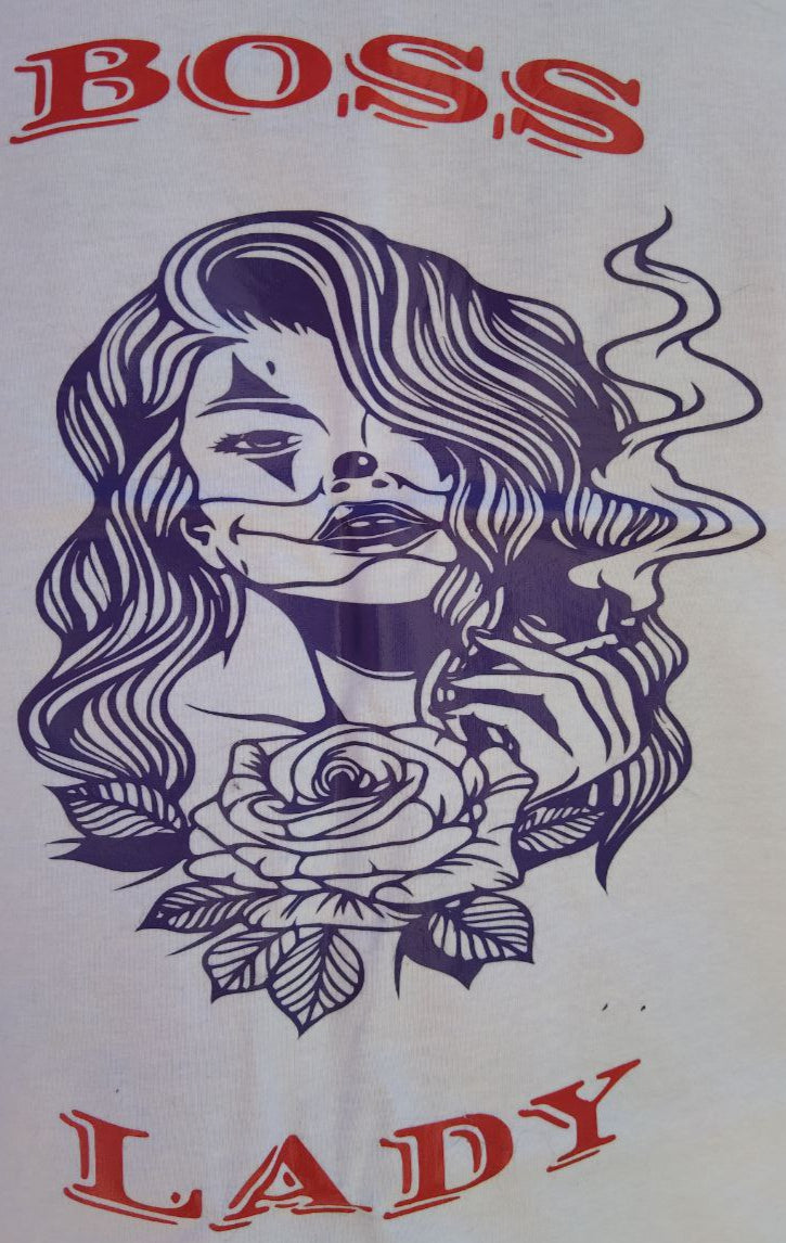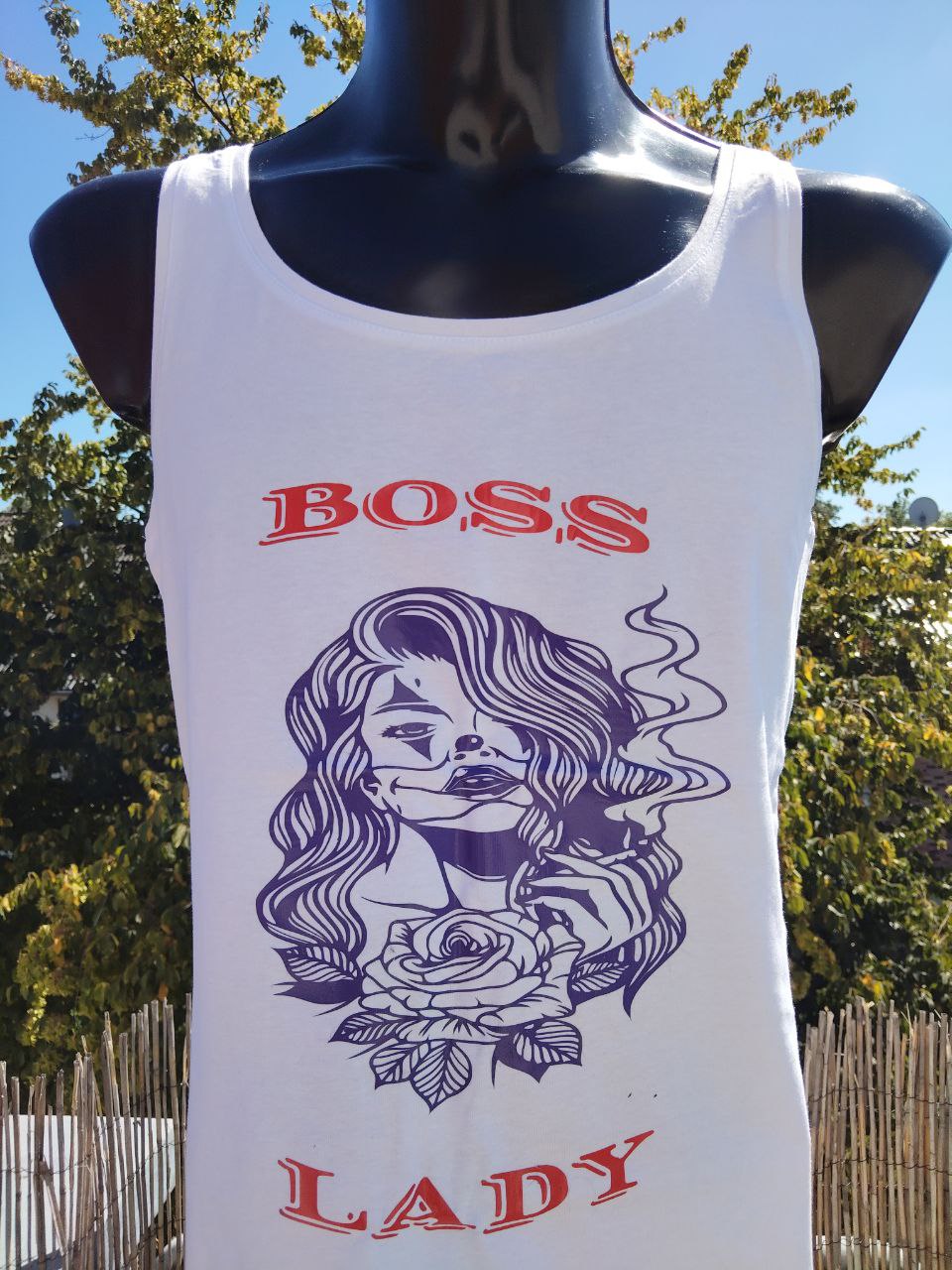 Weißes Damen Tank Top mit Blau Rotem BOSS LADY Aufdruck